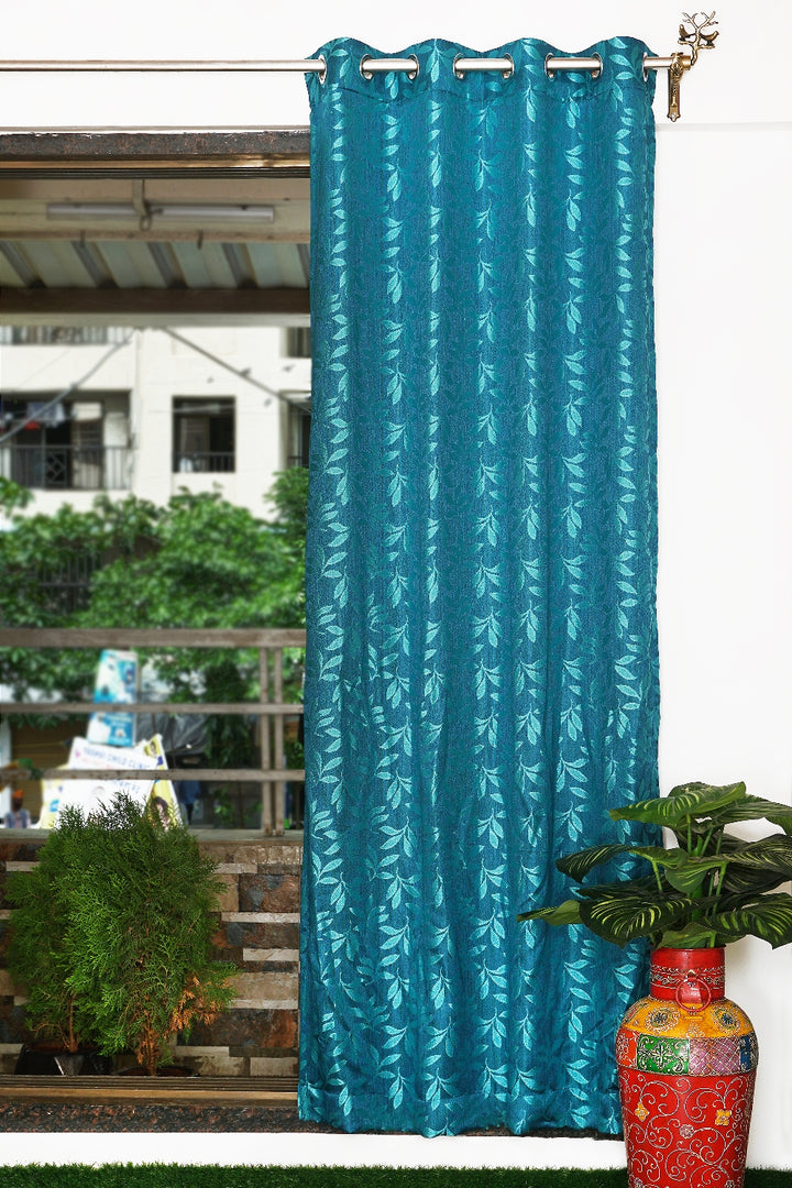 Jacquard Fabric Leaf Design Eyelet Window Curtain