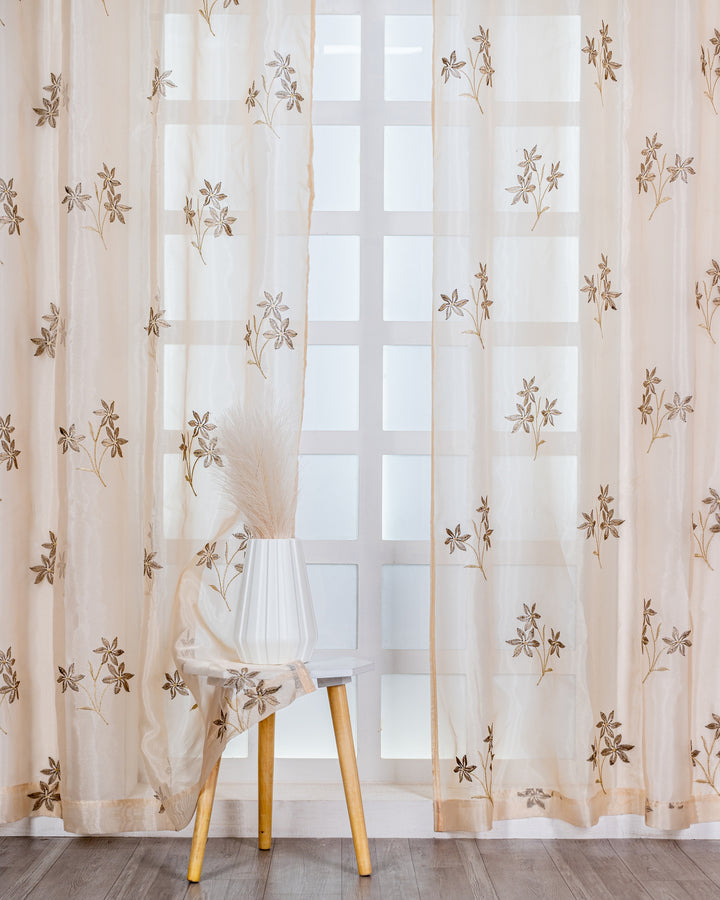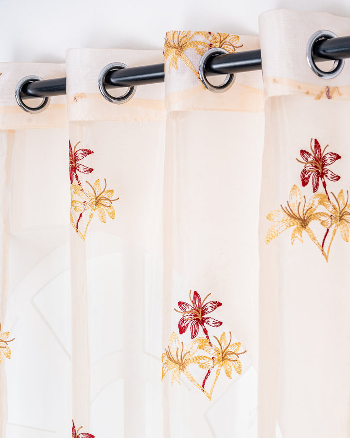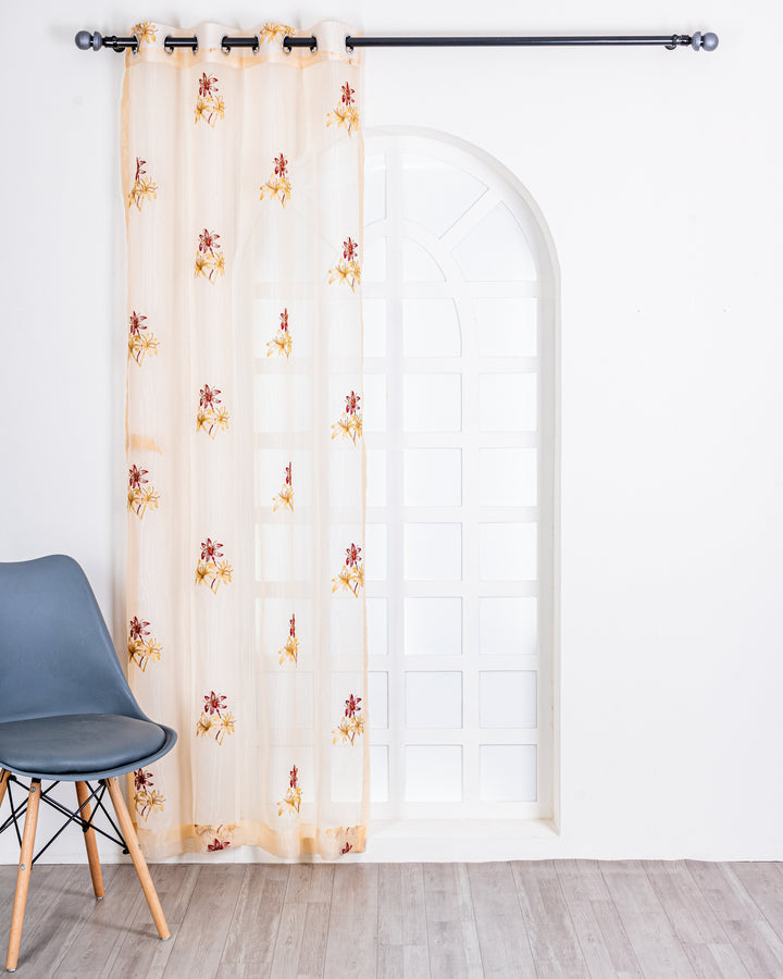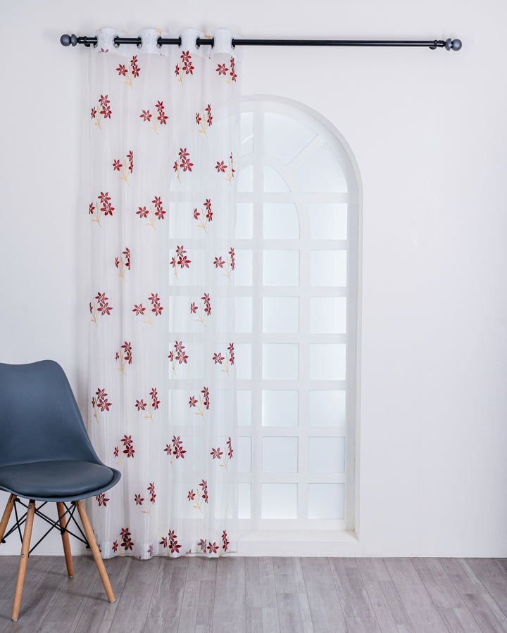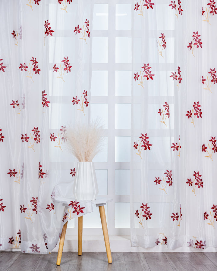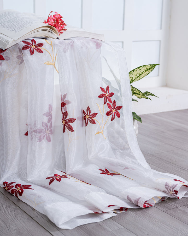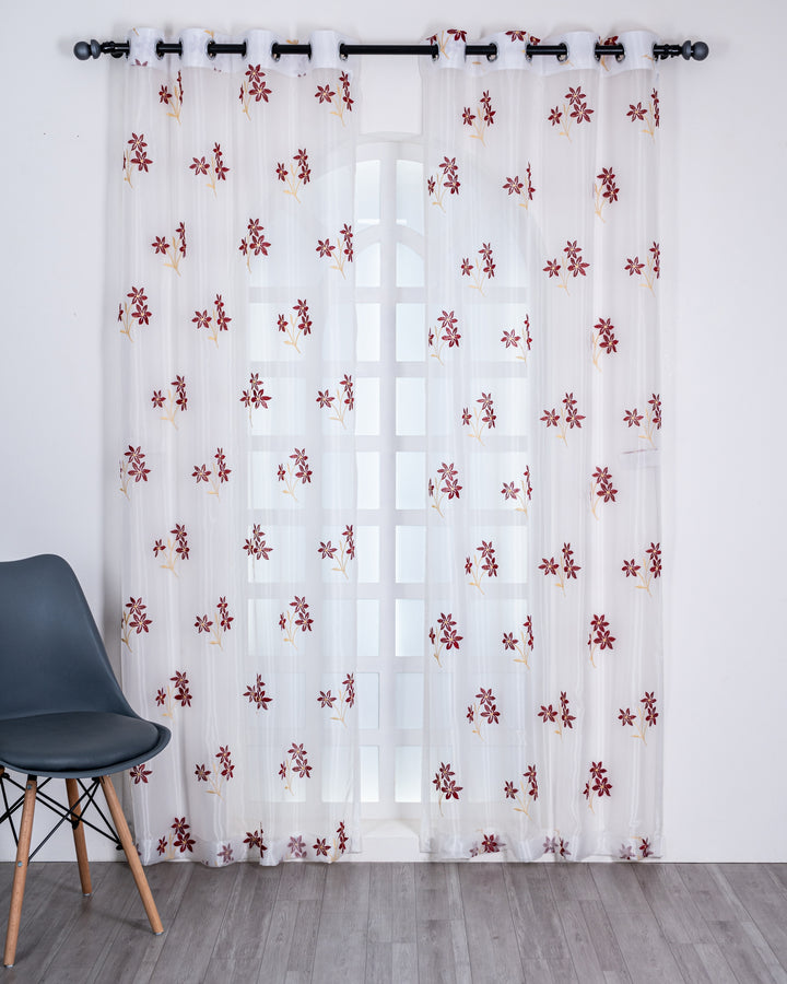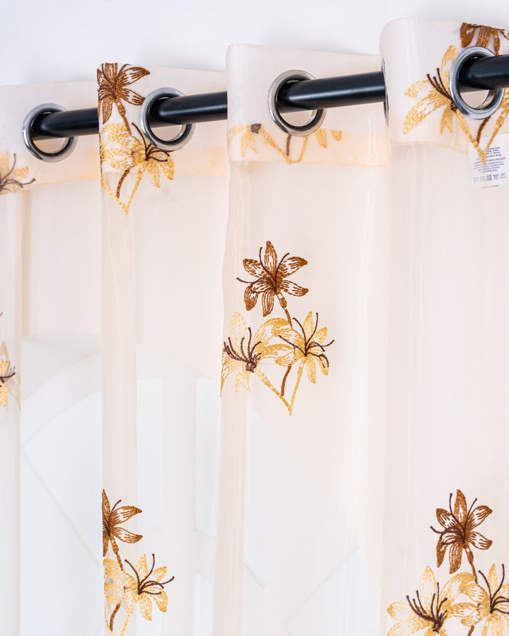 Parda online Premium 3 Flower Embroidery Tissue Curtain with Soft & Durable Fabric