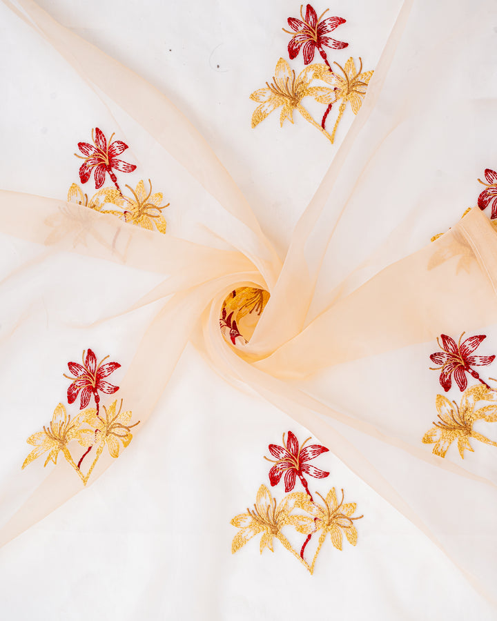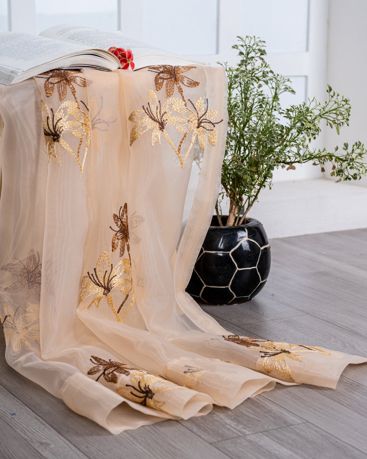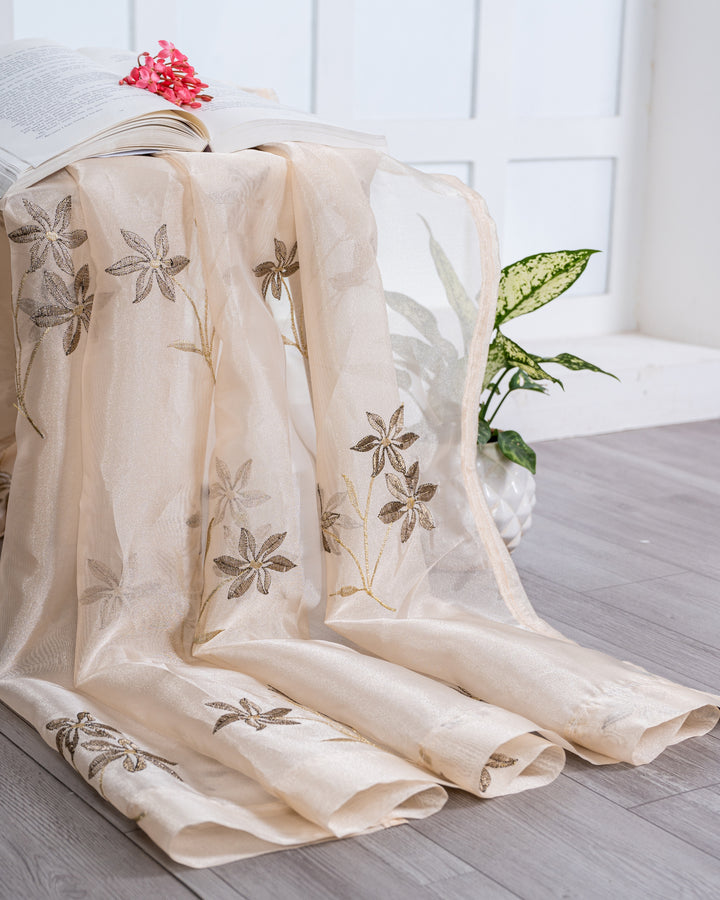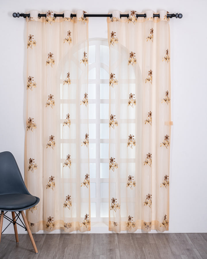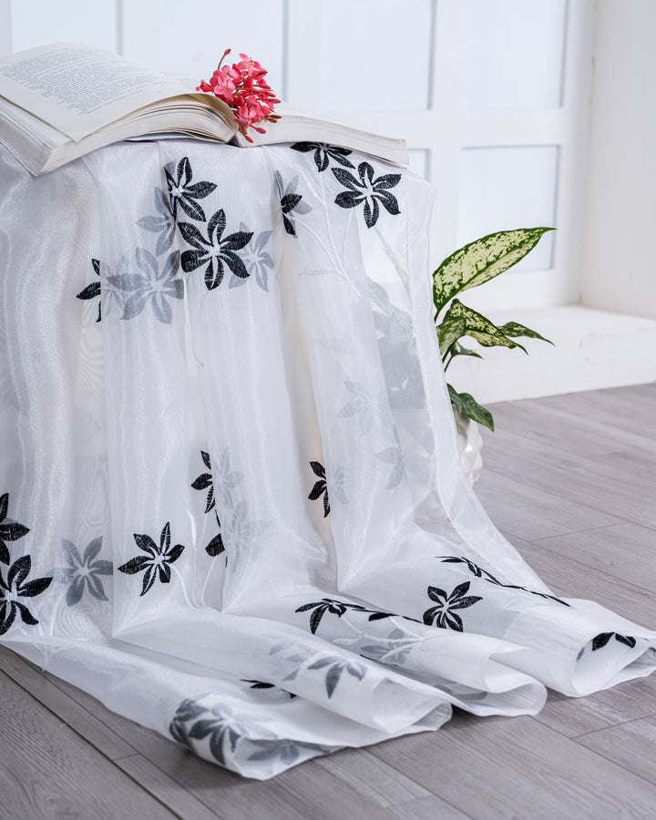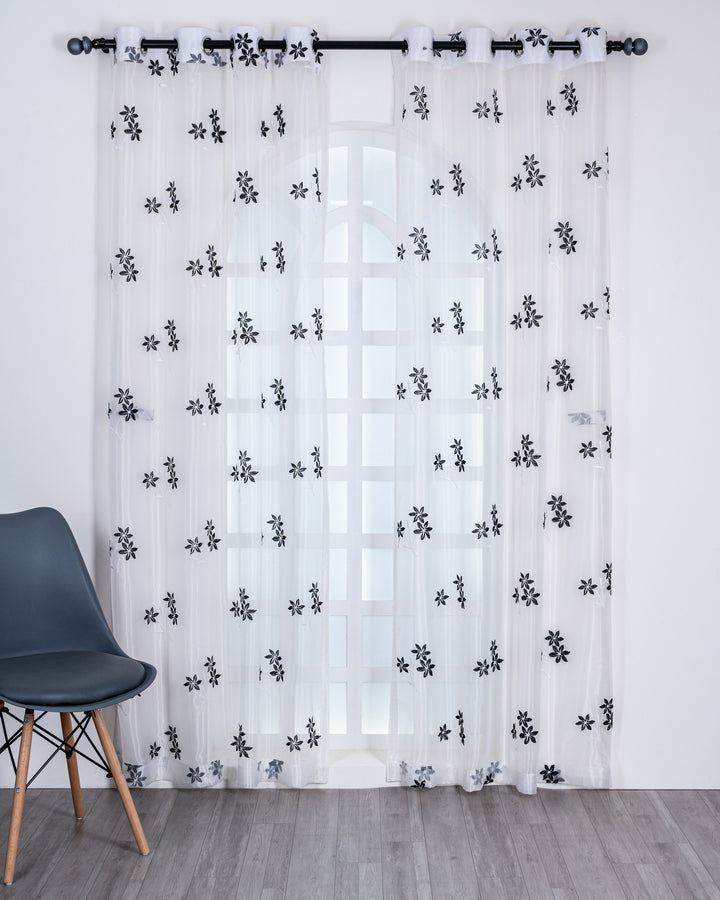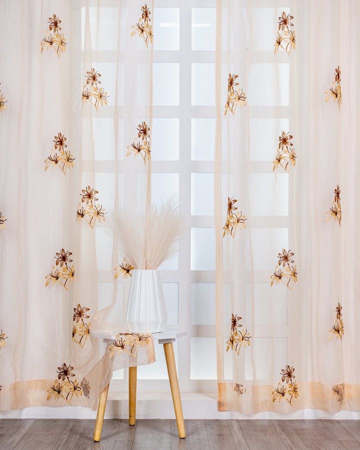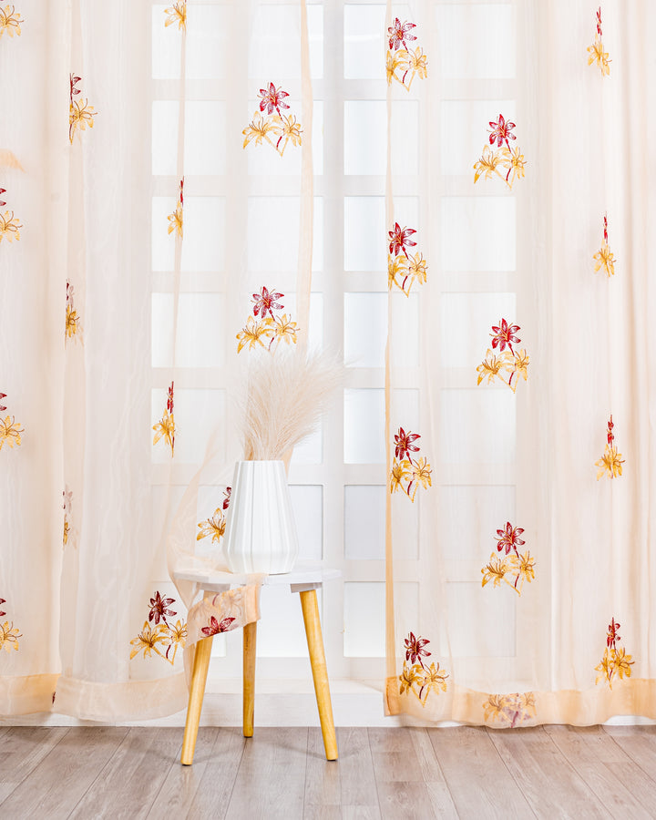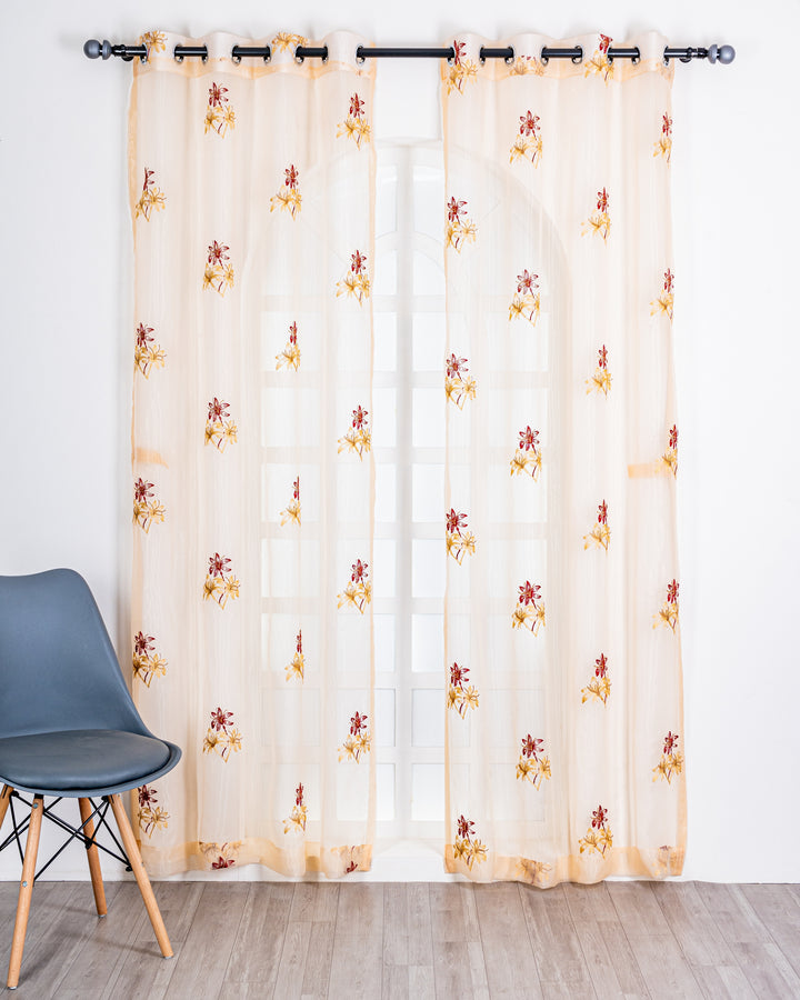 Parda online Premium 3 Flower Embroidery Tissue Curtain with Soft & Durable Fabric