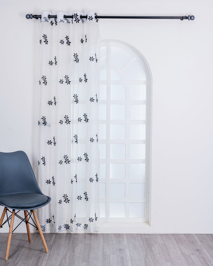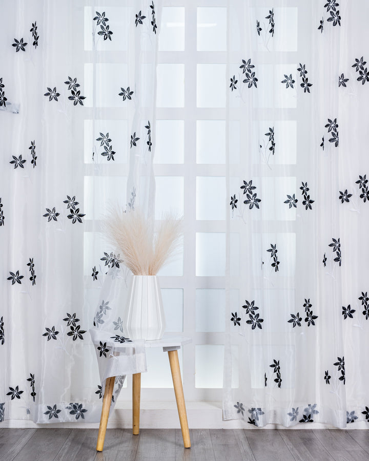 Elevate your interior spaces with this premium tissue curtain, meticulously crafted with delicate 3-flower embroidery detailing. The soft, breathable fabric filters natural light beautifully while maintaining privacy, making it ideal for bedrooms, living rooms, and dining areas. Engineered for durability, these curtains resist fading and maintain their elegant appearance through regular use and washing. The lightweight tissue composition allows for effortless draping and installation, while the intricate floral embroidery adds a sophisticated touch to any décor. Perfect for those seeking both aesthetic refinement and practical functionality in their window treatments.