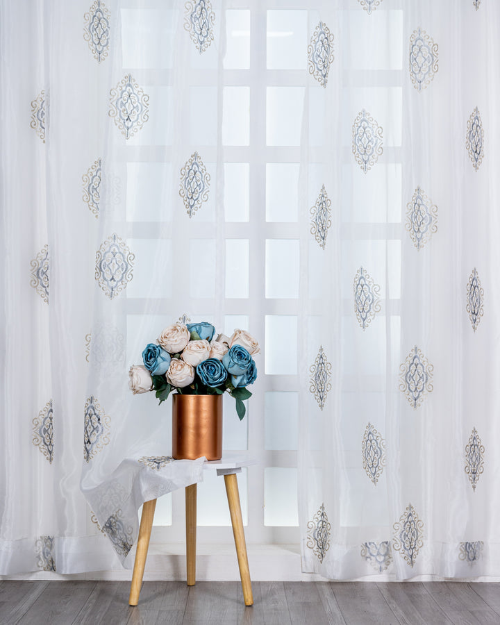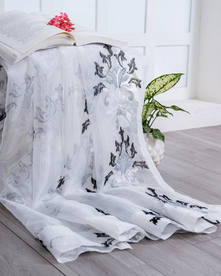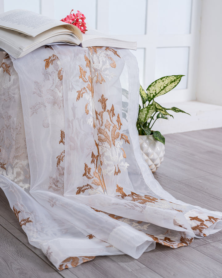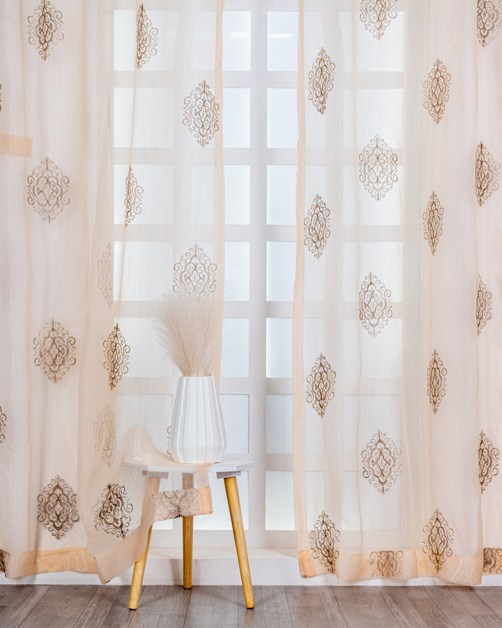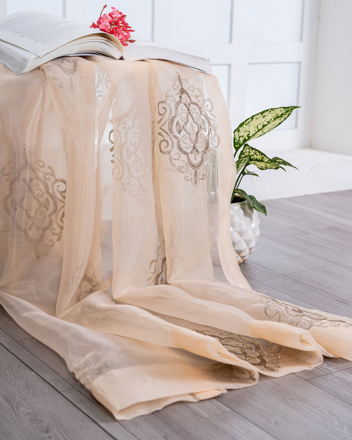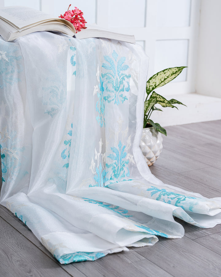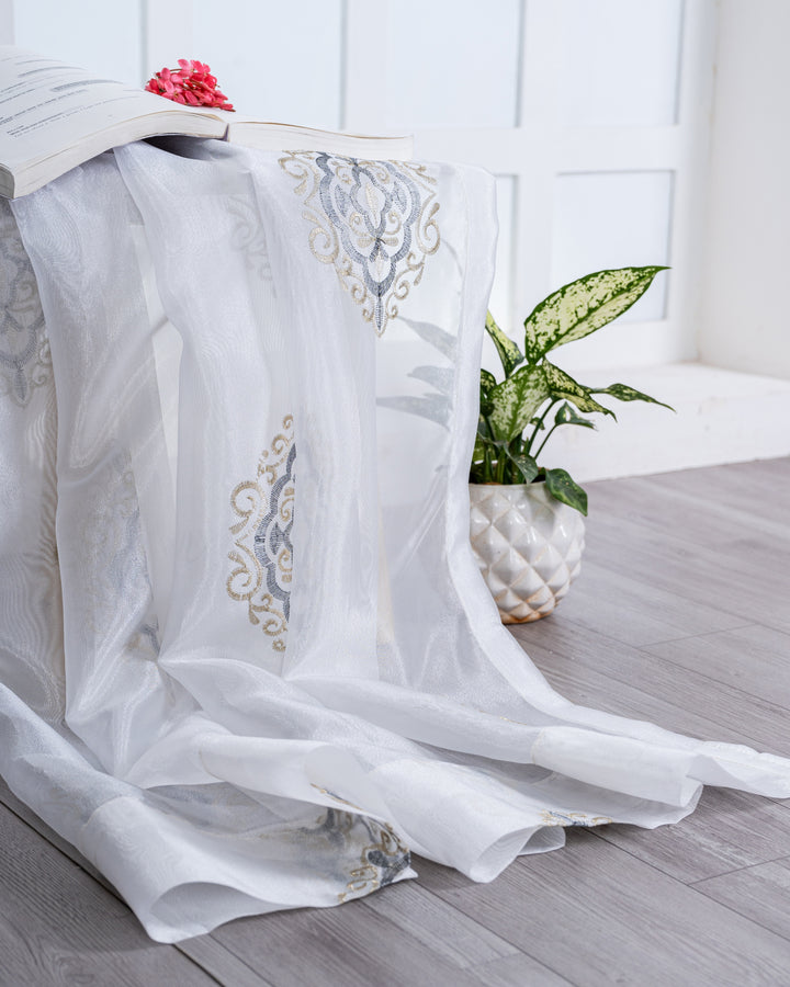 Parda online Premium Damas Design Embroidery Tissue Curtain with Soft & Durable Fabric