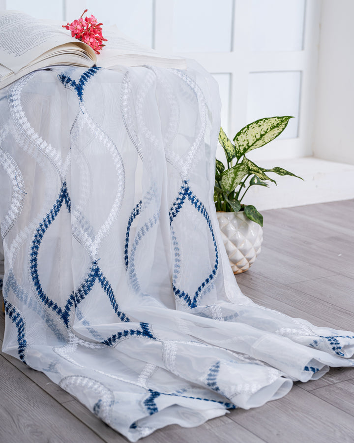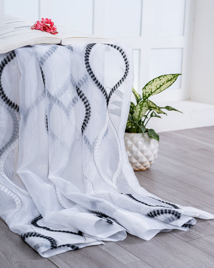 Parda online Premium Drop Embroidery Tissue Fabric Curtain with Soft & Durable