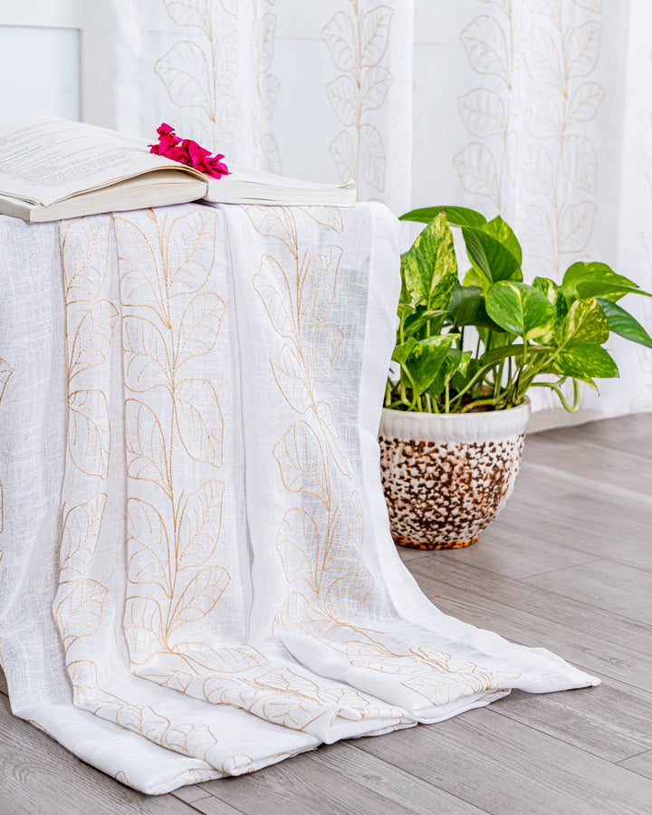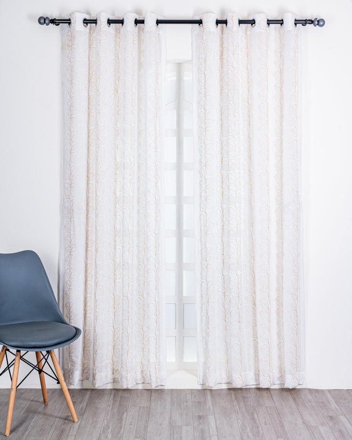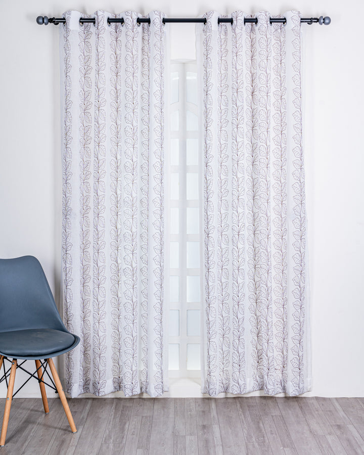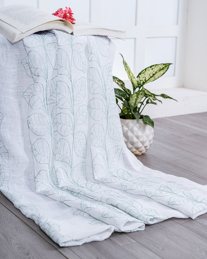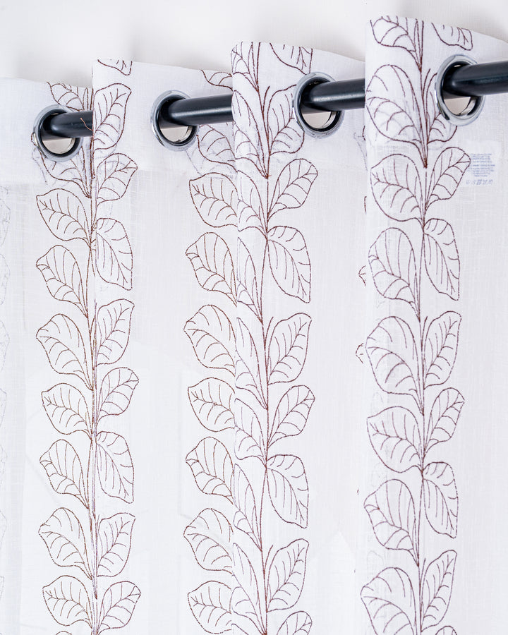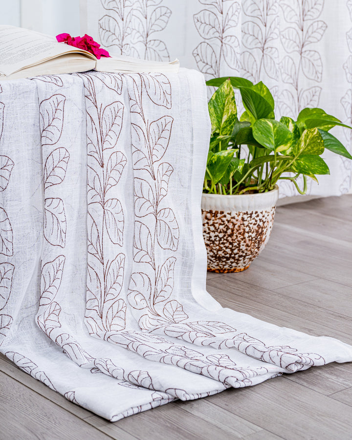 Parda online Premium Embroidery Linen Curtain with Soft & Durable Fabric - Leaf Design