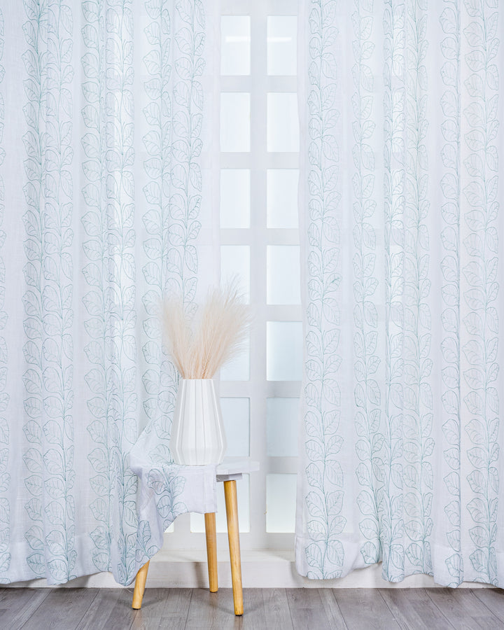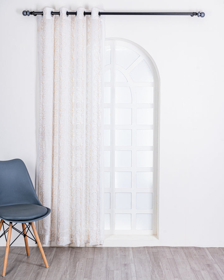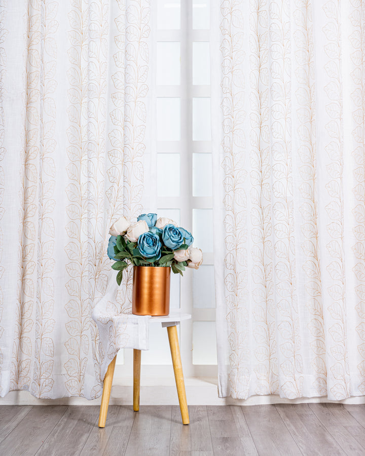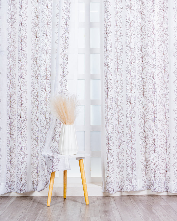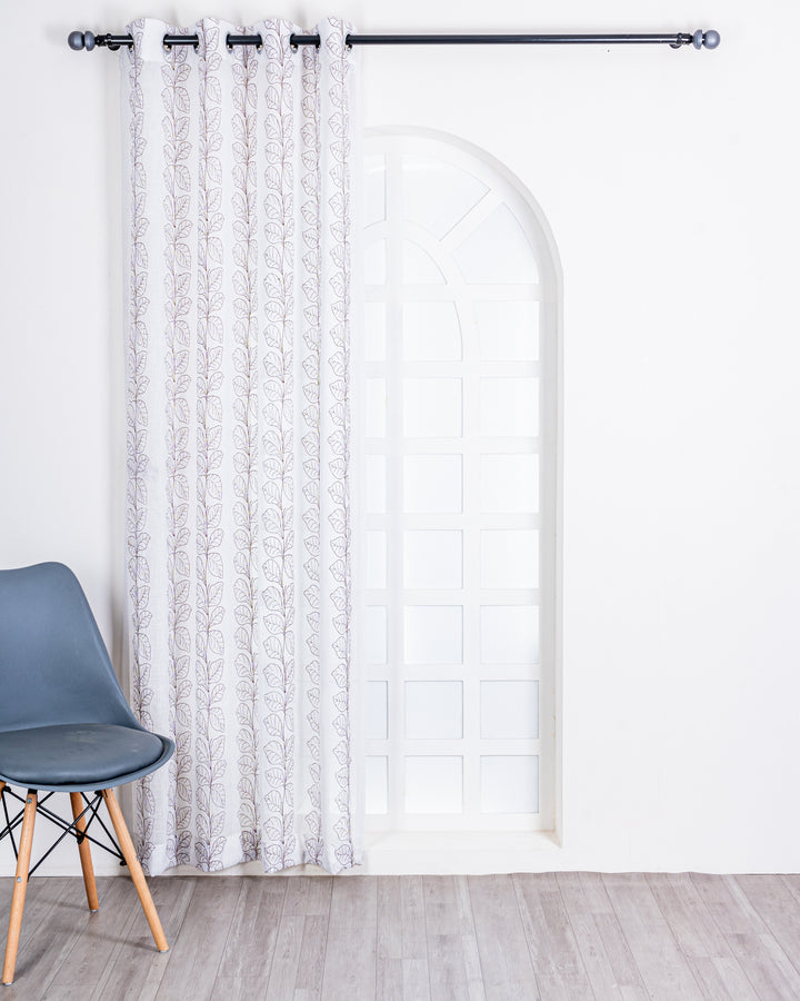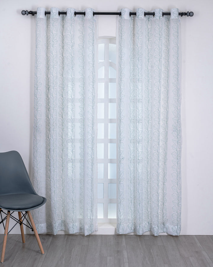 Parda online Premium Embroidery Linen Curtain with Soft & Durable Fabric - Leaf Design