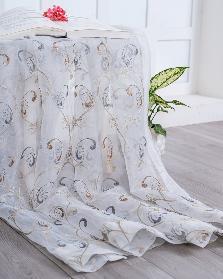 Elevate your interior spaces with our Premium Embroidery Tissue Fabric Curtain, meticulously crafted for discerning homeowners. This sophisticated window treatment combines delicate embroidered detailing with a lightweight tissue fabric that filters light beautifully while maintaining privacy. The soft, breathable material drapes elegantly, creating an understated luxury aesthetic in any room. Built for longevity, the durable construction withstands daily use and regular washing without compromising its refined appearance. Perfect for living rooms, bedrooms, or formal spaces seeking a touch of refined elegance. Transform your windows into a statement of style and quality craftsmanship.
