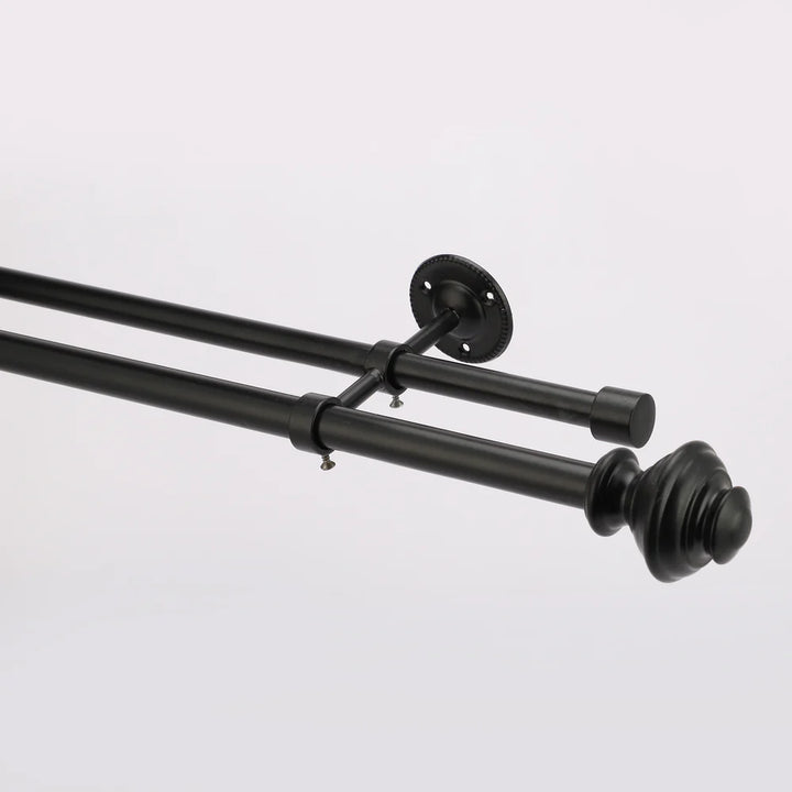 Typho Black Metal Finial Extendable Double Curtain Rod Black 19MM (Hardware Included)